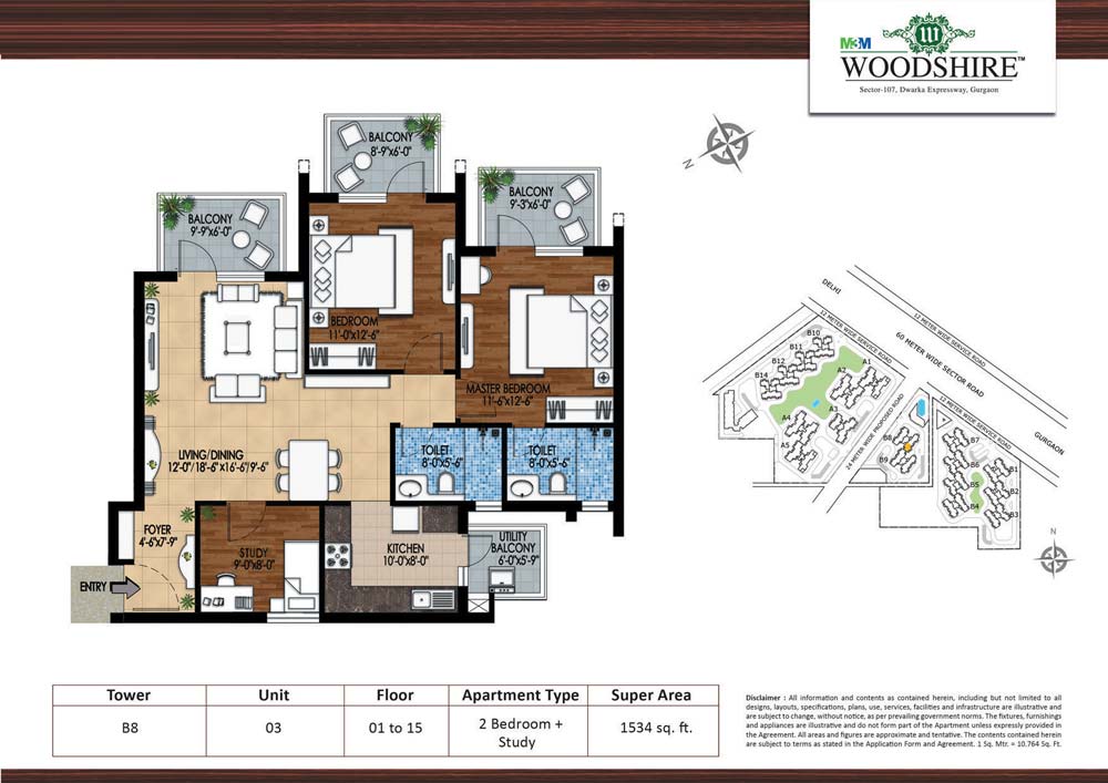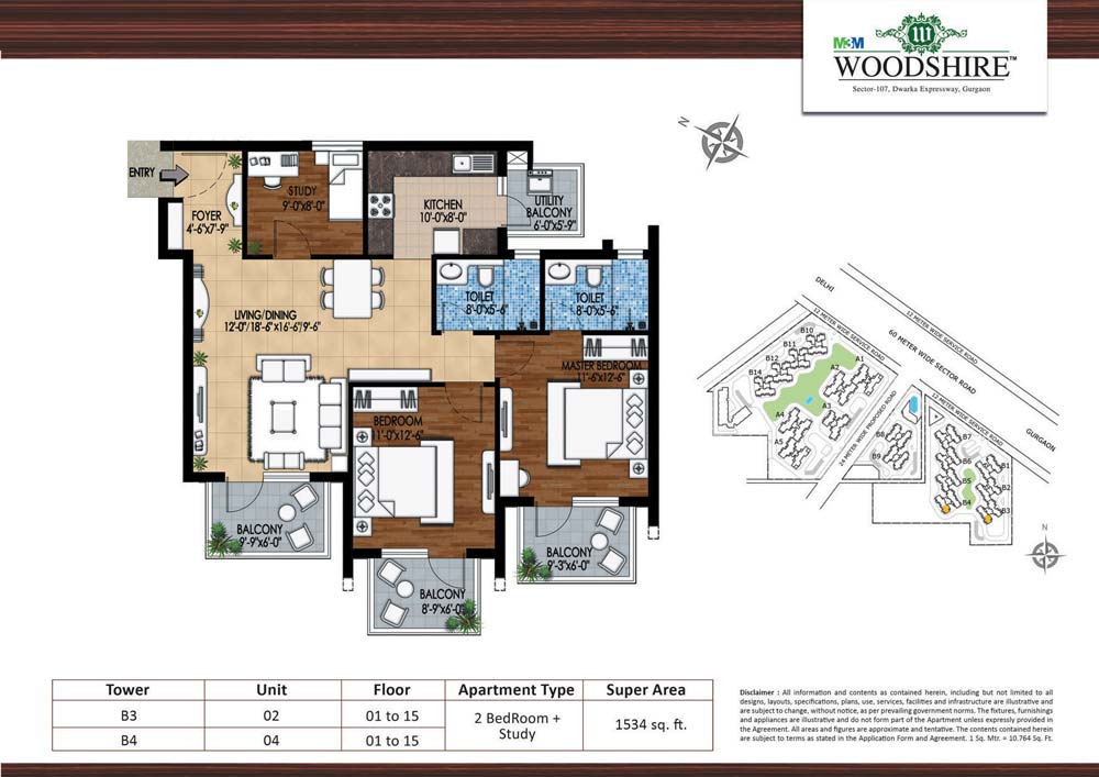 2 BHK + Study, Tower - B3 & B4, Unit - 02 & 03, Area : 1534 sq.ft.