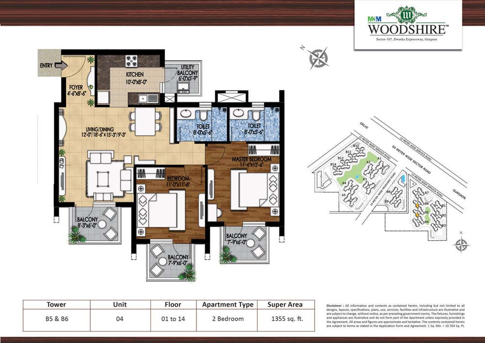 2 BHK, Tower - B5 & B6, Unit - 04, Area : 1355 sq.ft.